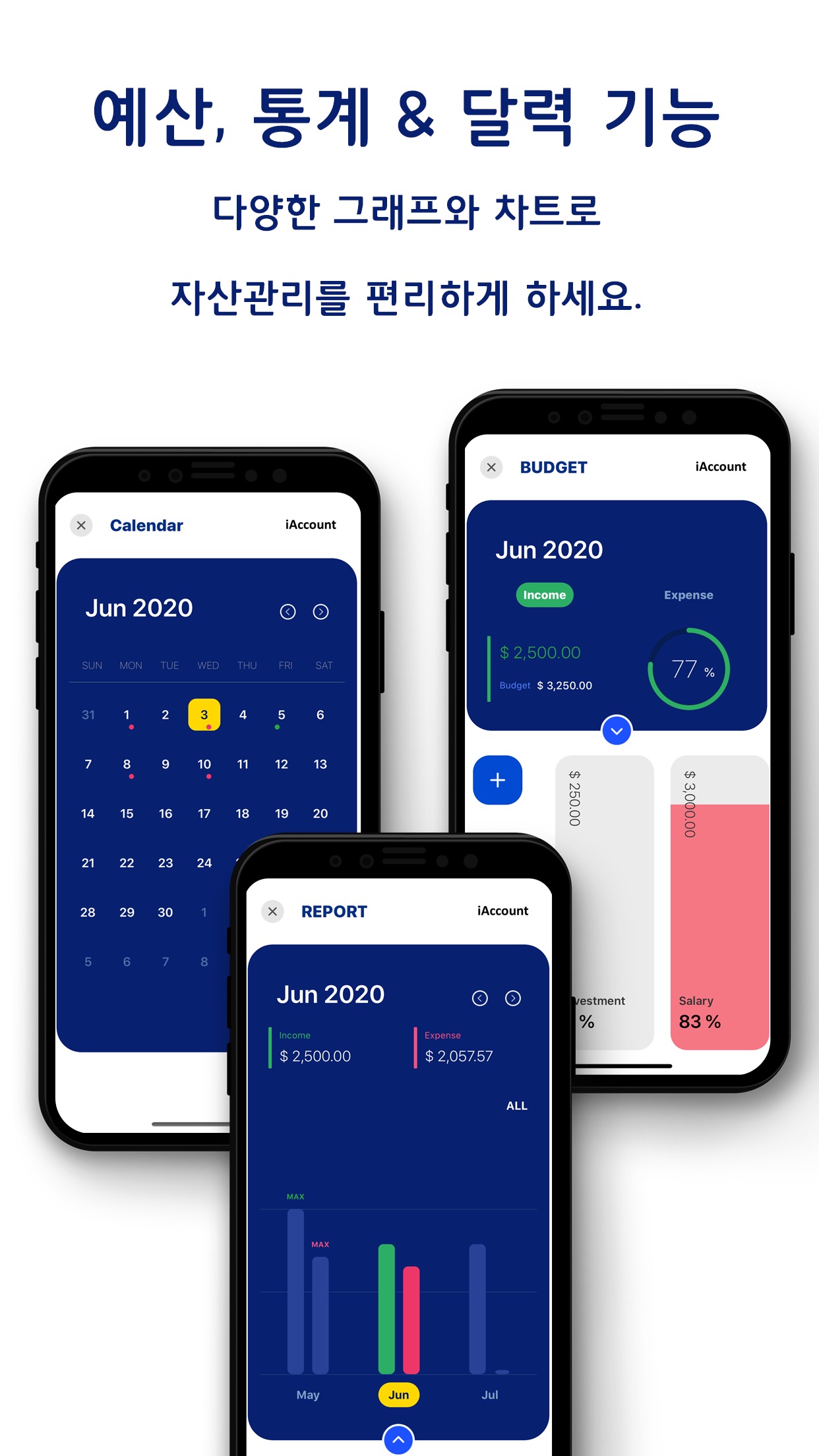 가계부 앱, iAccount ‘iAccount Manager’는 다양한 계정을 쉽고, 간편하게 관리할 수 있도록 돕는 가계부 어플입니다.30여개의 통화를 사용할 수 있어서 다양한 통화의 계정을 한번 편리하게 관리할 수 있습니다. 예산, 통계, 달력 기능을 통해 수입, 지출을 관리하고, 변동상황을 쉽게 파악할 수 있습니다.또한, 각 계정과 수입, 지출 항목의 아이콘을 자신이 원하는 이미지에서 추가할 수 있습니다. iAccount Manager